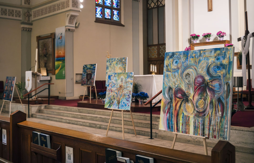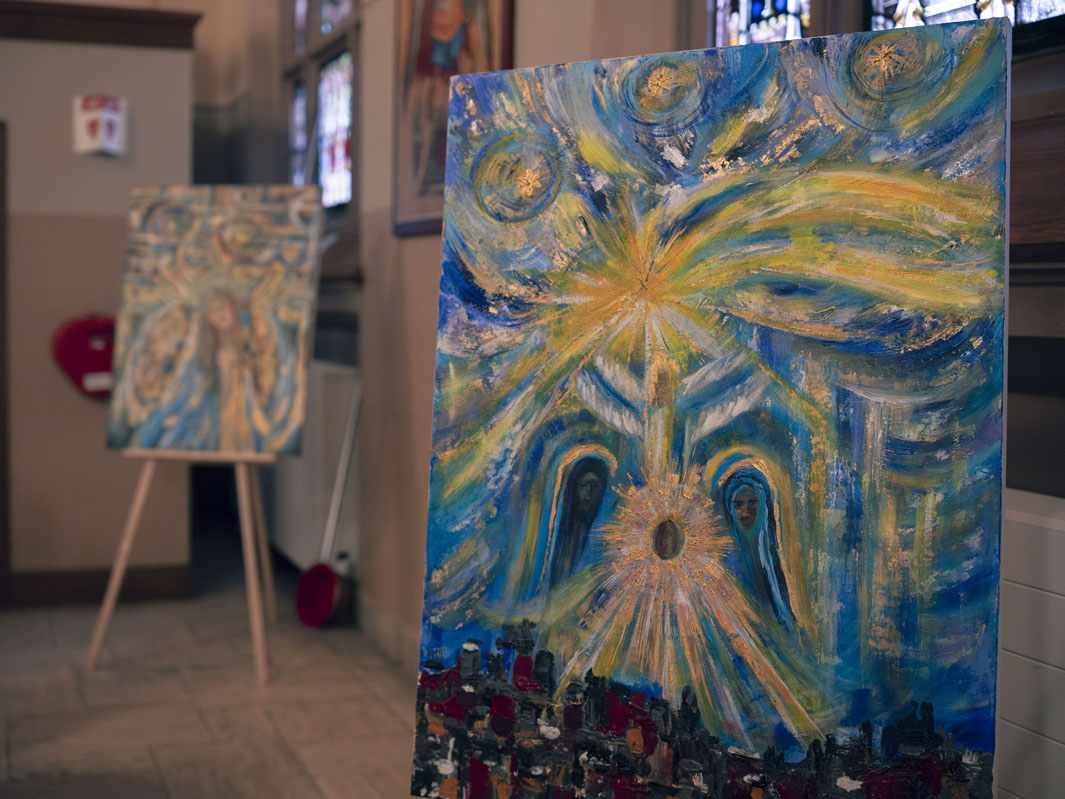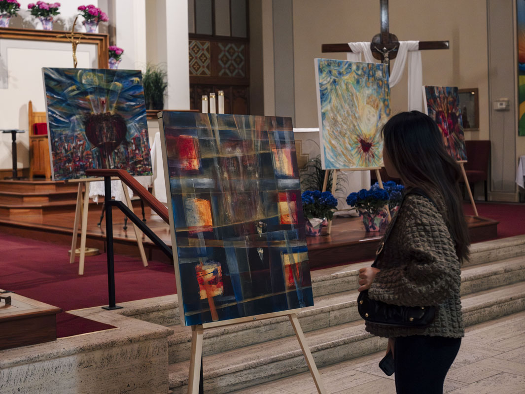 On Tuesday, May 6, the parish hosted an evening on art and faith entitled SACRED heART. This event was co-sponsored by the parish and the Office of Catholic Youth. At the event, Dr. Christina Labriola gave a talk on the relationship between faith and art and artist Anna Mancini shared her paintings. Beautiful music was provided by the group “Ensemble Ex nihilo.” There was a great turnout. Thank you to all who contributed.